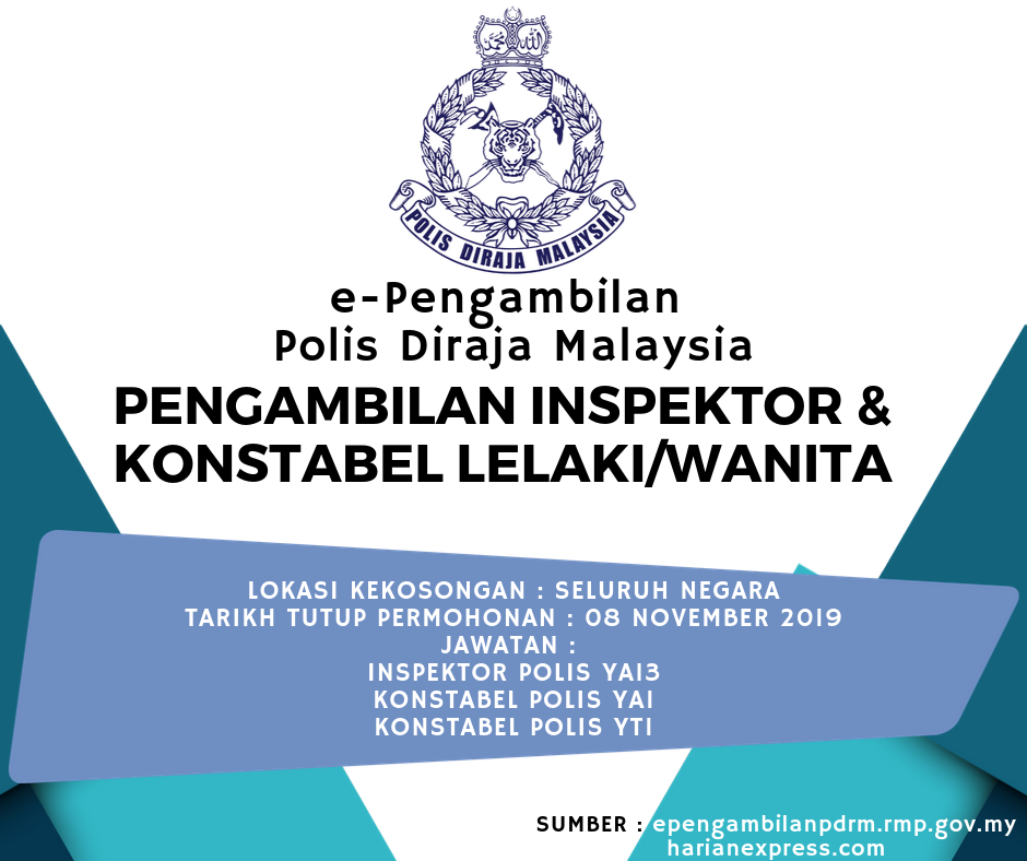 Nov 02 2021 e-Pengambilan PDRM Polis DiRaja Malaysia. Permohonan Jawatan Polis DiRaja Malaysia. Permohonan terbahagi kepada dua kategori iaitu-.